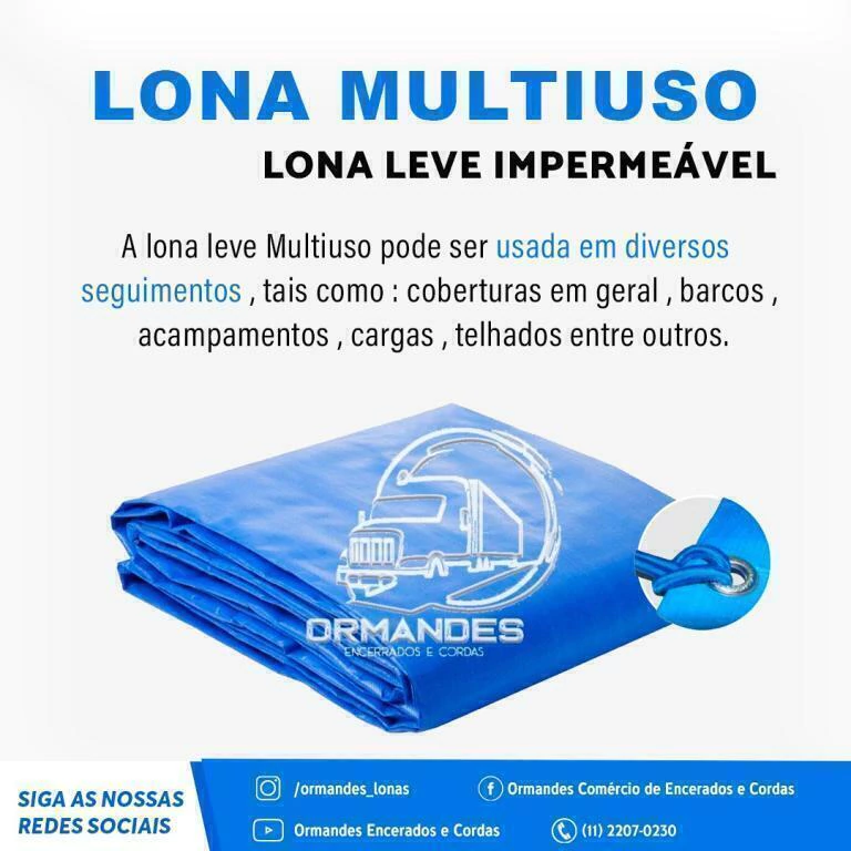 LONA LEVE MULTIUSO , É O MAIS SOFISTICADO TECIDO EM POLIETILENO DE ALTA DENSIDADE QUE EXISTE PARA RESOLVER OS PROBLEMAS DE PROTEÇÃO CONTRA A AÇÃO DE CHUVAS, SOL E POEIRA. É SUPER RESISTENTE, MUITO MAIS LEVE QUE AS LONAS CONVENCIONAIS, ALÉM DE BASTANTE FLEXÍVEL E MALEÁVEL.
